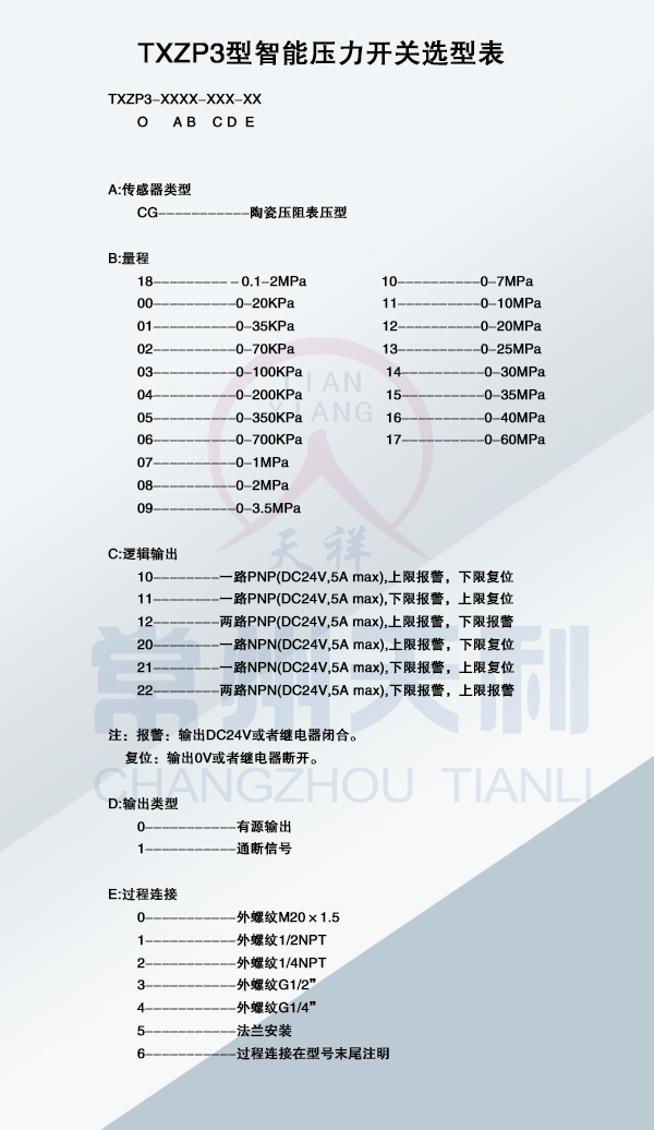 TXZP3智能壓力開(kāi)關(guān)基本參數(shù)
