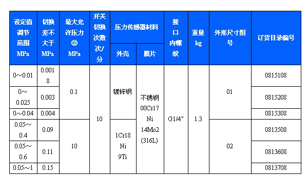 501/7DZ雙觸點壓力開關(guān)采用膜片式的傳感器,可用于中性氣體、液體介質(zhì),部分規(guī)格可用于腐蝕性介質(zhì)。501/7DZ雙觸點壓力開關(guān)設(shè)定值可調(diào),調(diào)節(jié)范圍0~1MPa。